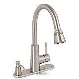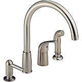 Elkay Harmony Single Hole Kitchen Faucet with Pull-down Spray and Forward Only Lever Handle Antique Steel (Antique Steel), Antique Silver. Whether you're looking for a faucet for your home or for commercial use, there's an Elkay faucet to meet your needs. From the kitchen and bath, to the... Room: Kitchen. Handle Type: Lever Handles. Number of Handles: Single. The soap dispenser offers convenience and dispenses a controlled amount of liquid. The ceramic disc valve provides a tight seal for drip free performance and ensures durability over time. Use a mild detergent such as liquid dishwashing soap and warm water for